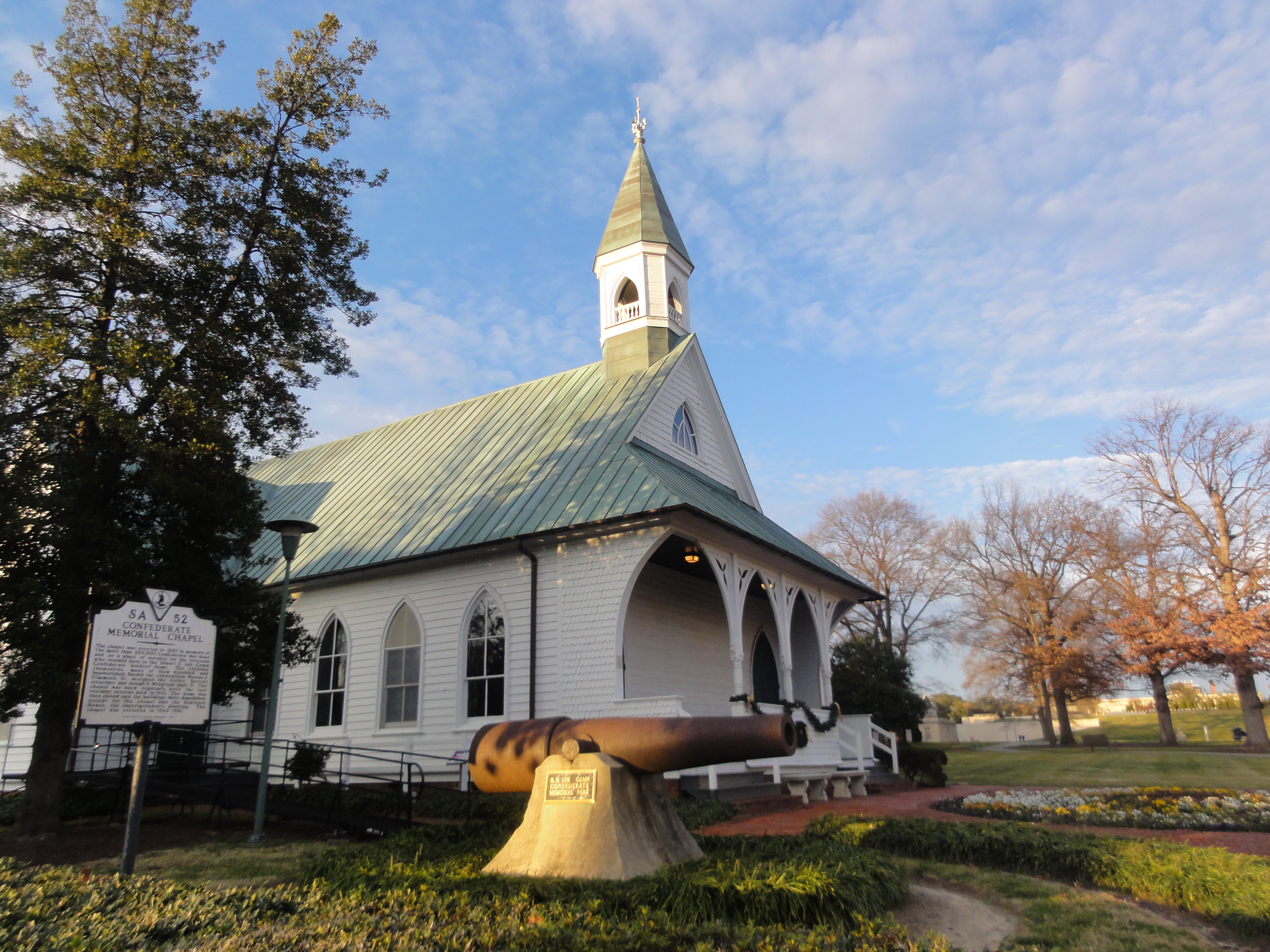 After doing a little research, I discovered that a group calling itself Virginia Flaggers wants the VMFA to fly a Confederate battle flag (not to be confused with the Confederate national flag) at the Lee Memorial Chapel, which is visible on the VMFA grounds. Apparently, the chapel is owned by the Sons of Confederate Veterans, who lease the chapel property to the VMFA. In 2010, the VMFA renewed its lease with the SCV, which, at the VMFA’s request, took down the battle flag. But now, the Virginia Flaggers–who probably have little to do now that the Tea Baggers have been shouted down by the Occupy Movement–want the flag put back up.