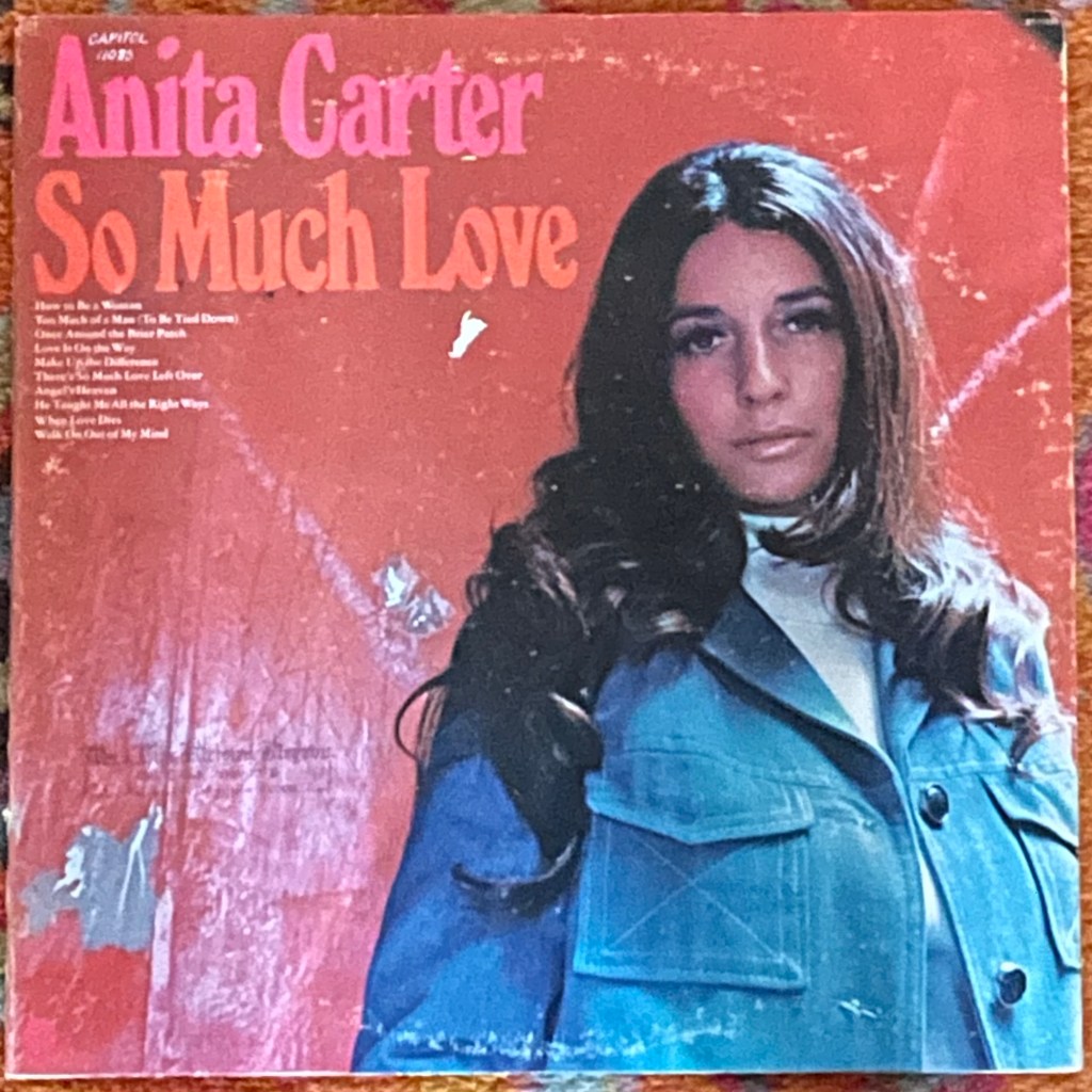 Recently, I was flipping through the racks at a local record store when I came across Anita Carter’s 1972 solo album, So Much Love. Never having heard an album by Anita, I bought it. And I’m glad I did. This $5 record turned out to be a real gem. At its best, it sounds like a cross between Patsy Cline and Dusty Springfield, with a little bit of “Harper Valley PTA” thrown in. It certainly is a product of early 70s Nashville, but it has a touch of Memphis soul, too.