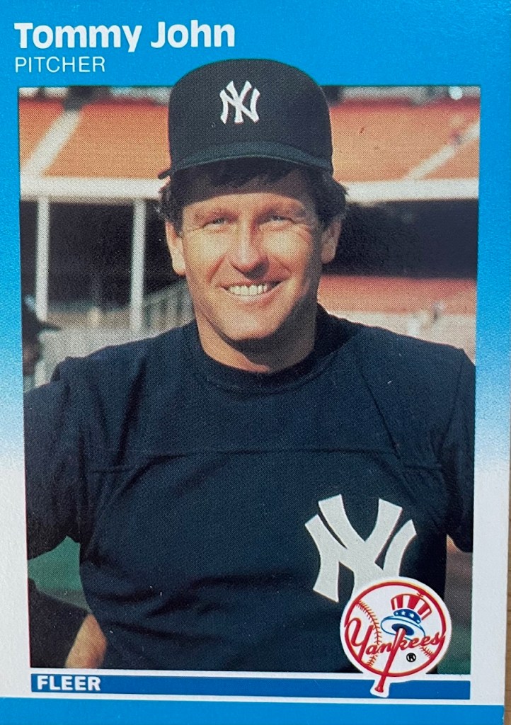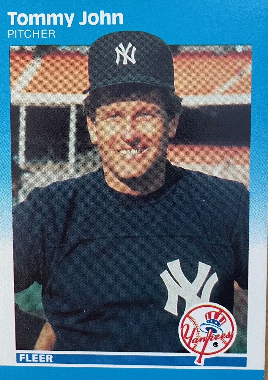 Recently, I’ve been reorganizing my baseball card collection, sorting out all the guys who were in the Hall as well as those who aren’t but were stellar (Will Clark, Don Mattingly, Dan Quisenberry) or who are not in the Hall because they were accused of taking PEDs (Roger Clemens, Mark McGwire, Rafael Palmeiro). Looking through Tommy John’s cards led me to think more about his HOF worthiness.